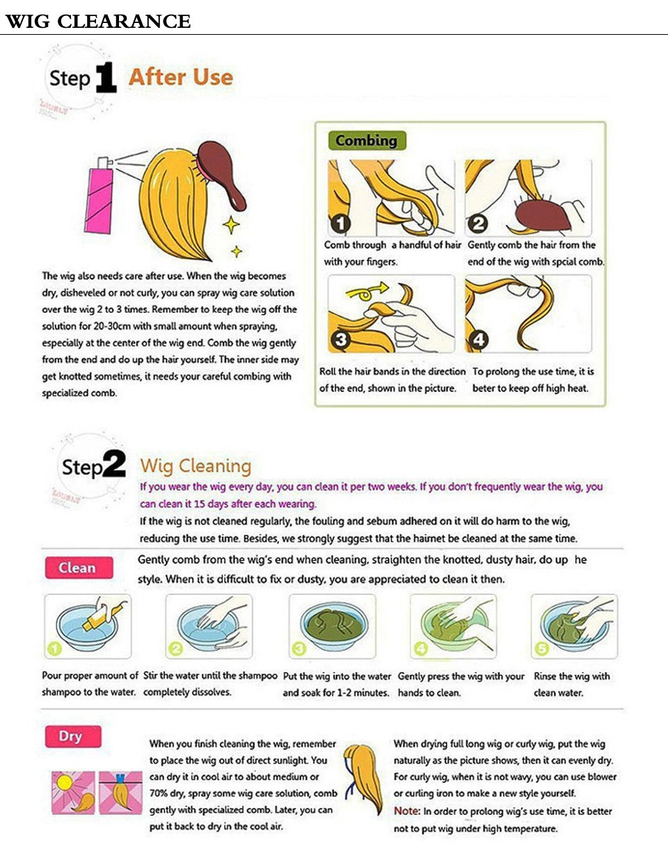 Cuando la peluca se seca, despedenada o no ondulada, la peluca de niño, la rubia también necesita atención. Puede pulverizar la solución de cuidado de la peluca sobre la peluca 2 a 3 veces. Rember para mantener la peluca de la solución para 15-25 cm con una pequeña cantidad al pulverizar, especialmente en el centro del extremo de la peluca. Peina la peluca con suavidad desde los extremos y haga el pelo usted mismo. El lado interior puede anudarse a veces, necesita su cuidado de peine con peine especializado.